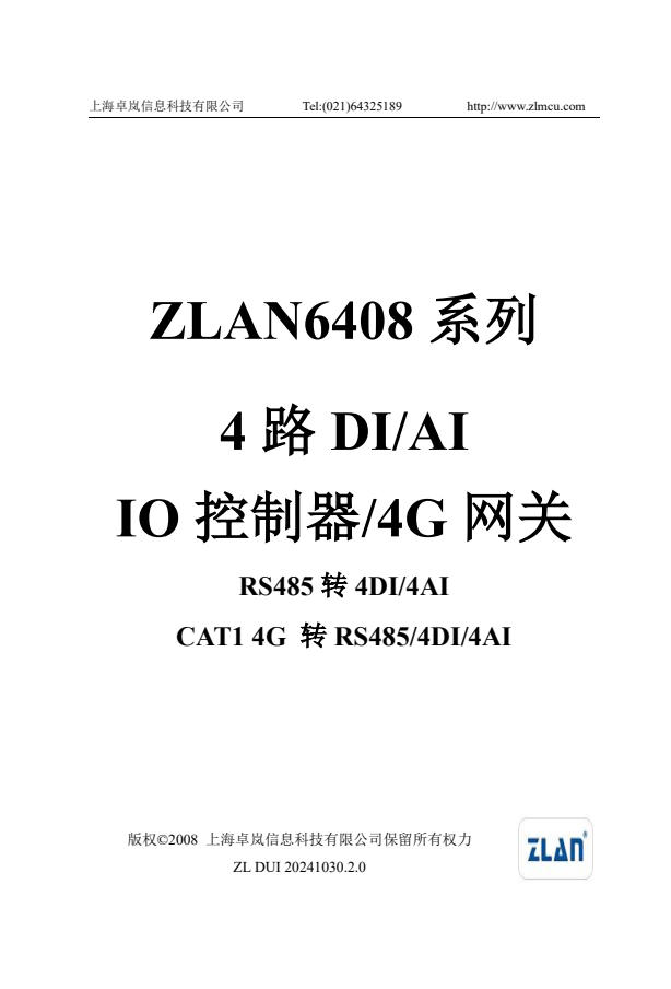 ZLAN6408是上海卓岚新推出的小体积IO控制器系列,支持采集开关量输入和模拟量输入信号。分为6408-1和6408-8两个子型号。