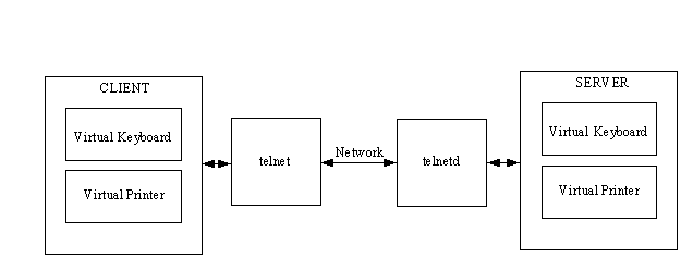The Telnet protocol treats the two ends of the connection as NVTs. The two programs at either end (telnet and telnetd for a UNIX server) manage the translation from virtual terminals to actual physical devices. The concept of virtual terminals enables Telnet to interconnect to any type of device, as long as a mapping is available from the virtual codes to the physical device. One advantage of this approach is that some physical devices cannot support all operations, so the virtual terminal does not have those codes. When the two ends are establishing the connection, the lack of these codes is noted, and sequences that would use them are ignored. This process is straightforward: one end asks whether the function is supported, and the other replies either positively or negatively. If it is supported, the necessary codes are sent. The list of supported functions is covered quickly in this manner.