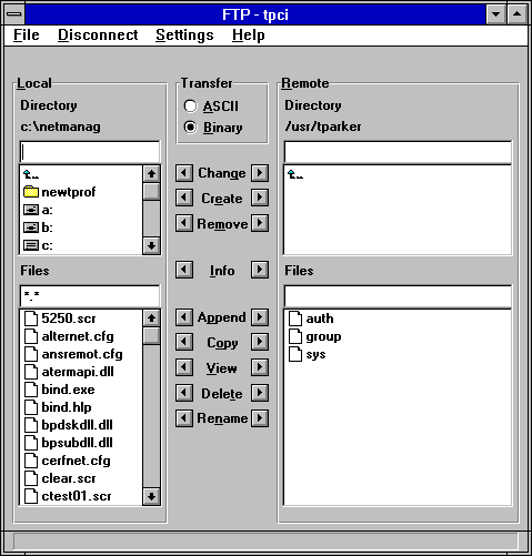 Figure 6.3. Using Telnet from a Windows for Workgroups machine.