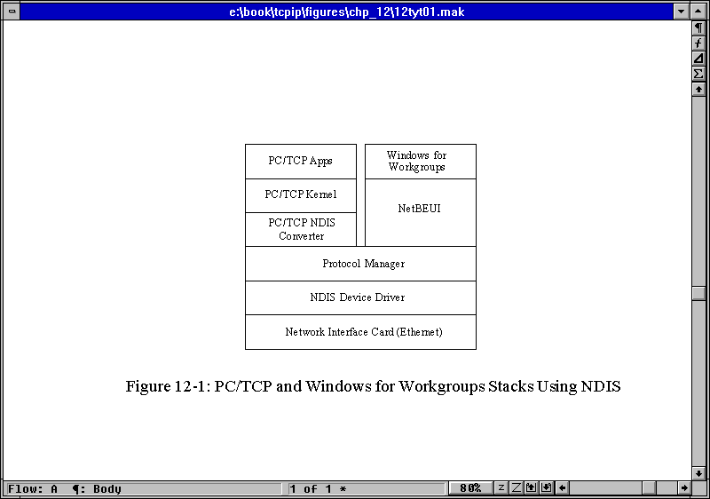 Figure 10.1. PC/TCP and Windows for Workgroups stacks using NDIS.