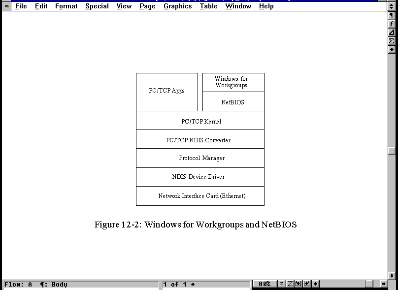 One approach is to set the PC/TCP system to enable Windows for Workgroups and TCP/IP packets on the same network. With this approach, TCP/IP sends out IP packets, and Windows for Workgroups sends out NetBEUI packets (the default type). Both protocols use NDIS (Network Device Interface Specification) device drivers to communicate with the network card. The problem with this approach is that other machines receiving the packets might get confused because of two different packet types, and the system does not work well if an external network is to be accessed (such as the Internet), because routers do not handle NetBEUI packets.