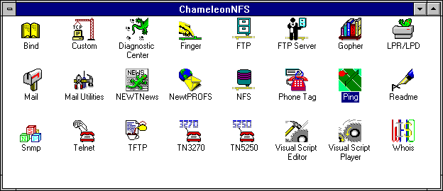 If the network is operating properly, try the ftp and telnet applications from the Chameleon program group. Full instructions for these utilities are in the documentation. As long as a host table entry has been created and ping succeeded, the other utilities should function properly. Both provide a graphical interface that Windows users will find familiar, instead of the character-based line interface found with DOS. To configure more elaborate functions within Chameleon (such as SNMP, mail, and Gateway routing), consult the Chameleon documentation.