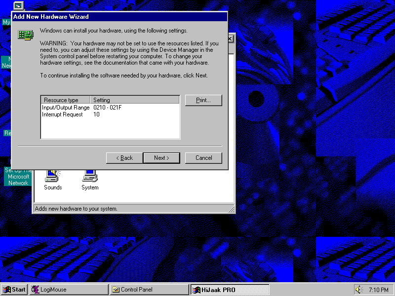 It is usually best to let Windows 95 try to find the network adapter by itself, especially if the new card is a plug-and-play type. If Windows 95 can identify the hardware automatically, it saves you having to provide configuration information. If you want Windows 95 to go ahead and look for the network adapter, select the Yes button on this dialog (the default value) and click the Next button. Windows 95 begins searching the system for new hardware. If Windows 95 detects a new network card, it displays a screen showing the parameters it detected and lets you confirm the selection. After a reboot, the network card should be properly recognized and active.