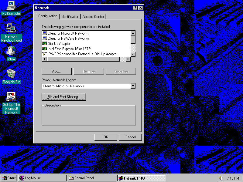 You can install the TCP/IP drivers included with Windows 95 by displaying the Network dialog. Click the Network icon in the Control Panel to display the Network dialog shown in Figure 10.12. The dialog should show a few basic entries created when Windows 95 installed itself, as well as the network hardware card. By default, the NetBEUI or NetWare (IPX) protocols might already be loaded.