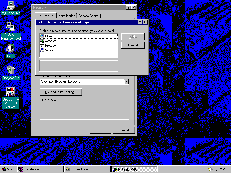 Figure 10.13. The Select Network Component Type dialog lets you add a protocol, client, service, or adapter card.