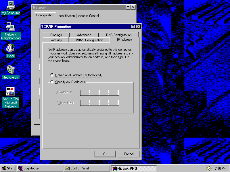 Some larger corporate networks are set up to assign IP addresses to connecting clients automatically using a special protocol. This protocol, called Dynamic Host Configuration Protocol (DHCP) servers, is usually used for machines that connect to a TCP/IP network only occasionally. If your network uses DHCP, you can select the first button on the IP Address page and let Windows 95 obtain your IP address and subnet mask for you. Most networks do not use DHCP.
