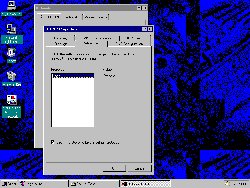 Next, you move to the Advanced page of the TCP/IP Properties dialog by selecting the Advanced tab at the top of the dialog. This dialog lets you specify that TCP/IP is the default protocol used by the Windows 95 machine by clicking the option at the bottom of the page, as shown in Figure 10.16. If your Windows 95 system is attached to a TCP/IP network and uses TCP/IP most of the time, make sure you select this option; otherwise, Window 95 tries to use NetBIOS or IPX/SPX on the TCP/IP network.